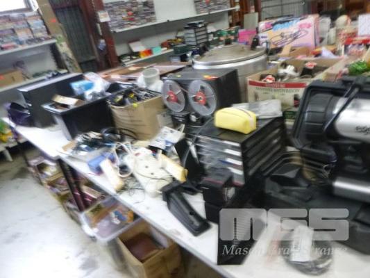 AKAI REEL TO REEL, GX215D, ELGER SPOTLIGHT, SAMSUNG BLU-RAY (NO REMOTE), BOSE SUB WOOFER, BAGS, ETC, 2 x TABLES