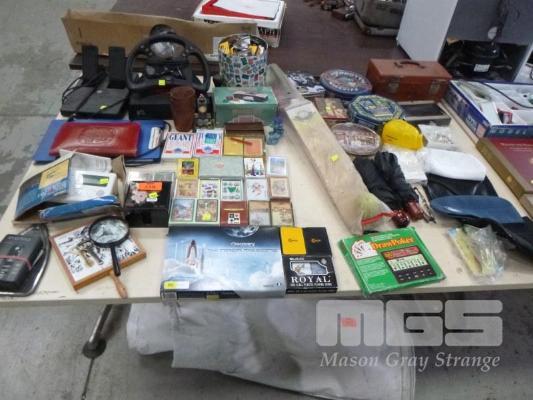 ASSORTED PLAYING CARDS, HANDBAGS, TINS, COLLECTABLE MATCHES, ETC, 1 x TABLE