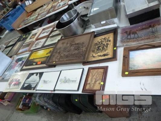 ASSORTED PRINTS & WALL ART, 1 x TABLE