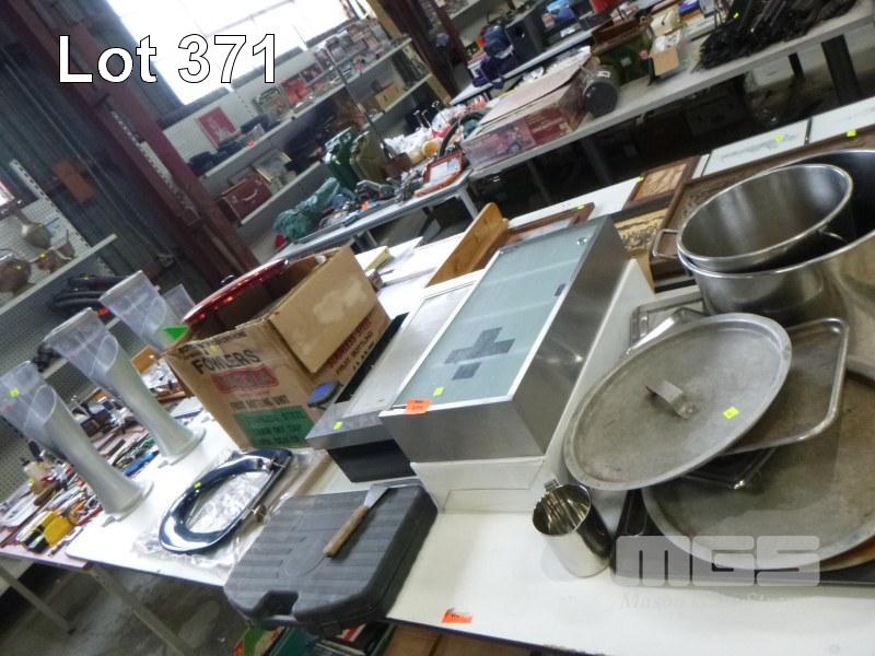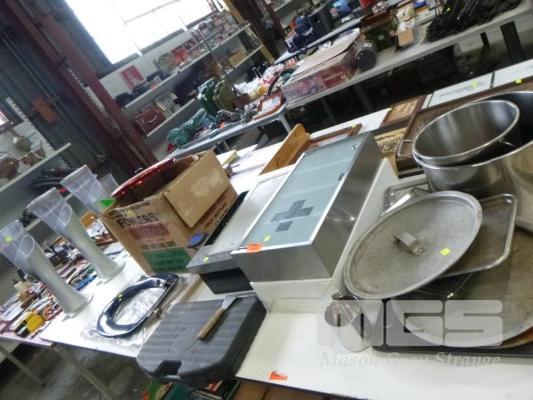 FOWLERS FRUIT BOTTLING UNIT, MISTARAL, 60cm RANGEHOOD, BBQ SET, FIRST AID CABINET, 3 LITRE DISPENSERS & KITCHENWARE, 1 x TABLE