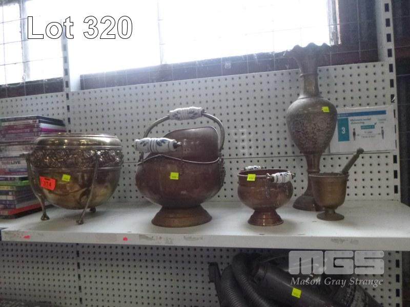 ASSORTED COPPER & BRASS ITEMS, POTS, VASES, COAL SCUTTLE ETC