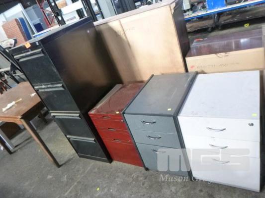 4 DRAWER METAL FILING CABINET & 3 X ASSORTED MOBILES