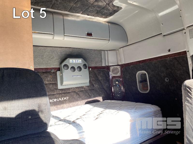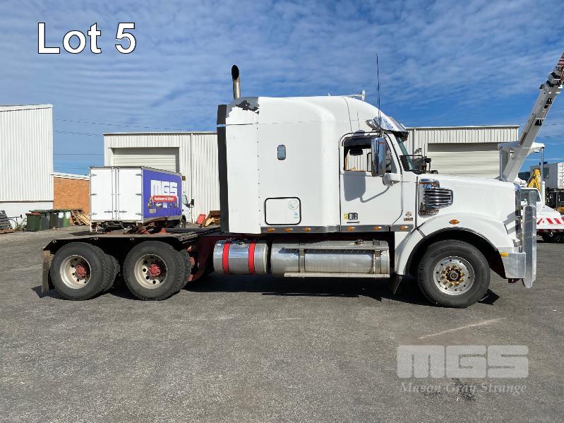 2011 FREIGHTLINER FLX CORONADO SD 6x4 PRIME MOVER REG: N/A VIN: 1FVJGVBG9CLBN3333 ENG: 79508707 ODO: 881,380kms SHOWING GVM: 24,000kg GCM: 90,000kg CUMMINS 15x485, EATON FULLER 18 SPEED MANUAL TRANSMISSION, TURBO DIESEL, AIRBAG SUSPENSION, WHITE DUCO, 11R22.5 2 DOORS, 2 SEAT, AIR CON, ALLOY RIMS, B DOUBLE RATED, BULL BAR, HIGH RISE SLEEPER CAB, ROCK SCREEN, IDLE HOURS: 2,397 MOCHILA SLEEPER A/C SYSTEM (WITH 1 KEY/S)