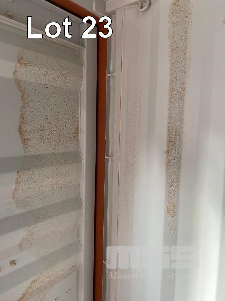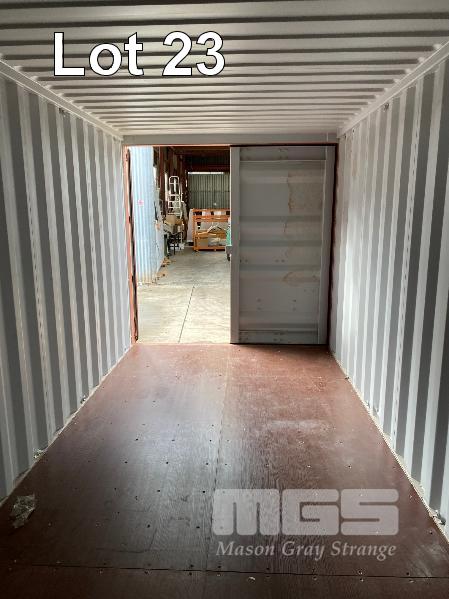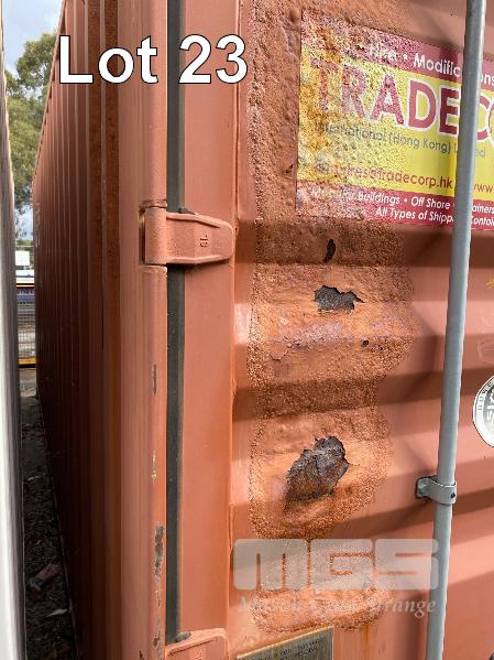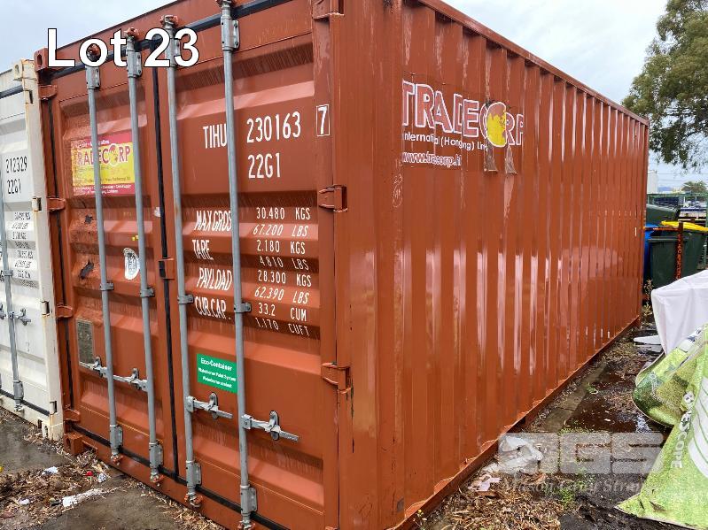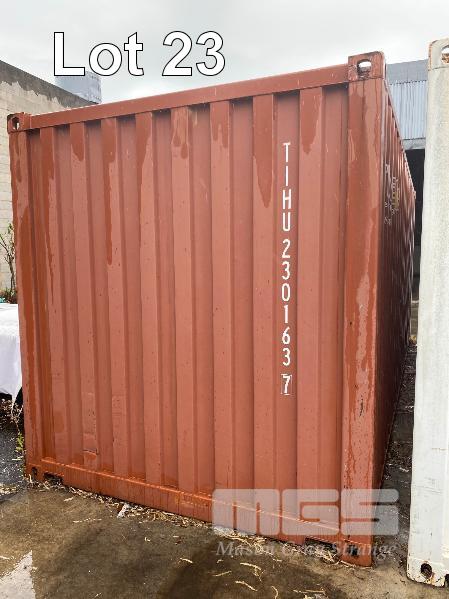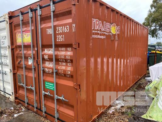 STEEL SHIPPING CONTAINER, 20' RED, WATER TIGHT SOME RUST AND PAINT PEALING FROM FIRE DAMAGE
