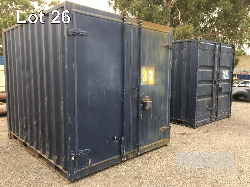 10' SHIPPING CONTAINER/STORAGE POD, BLUE, RUST HOLES IN ROOF