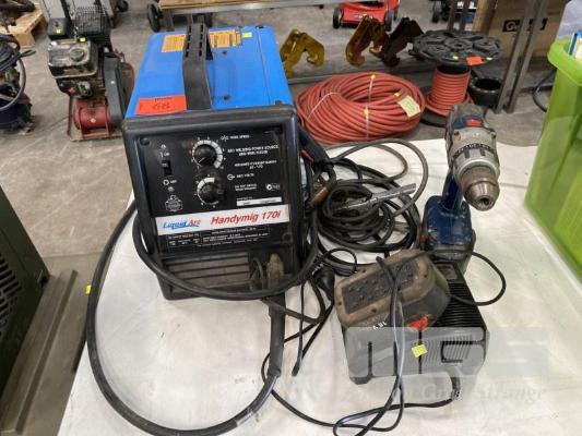 MIG WELDER, LIQUID ARC HANDYMIG 170I, 240V & CORDLESS DRILL, AEG, BATTERY & CHARGER