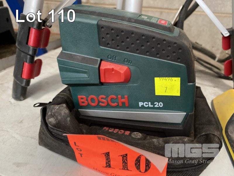 LASER LEVEL, BOSCH MOD: PCL20 WITH ALLOY TRIPOD, STANLEY FATMAX STUD DETECTOR 2 x ROTARY HAZARD LIGHTS, 12V & HPM RCD POWER BOX