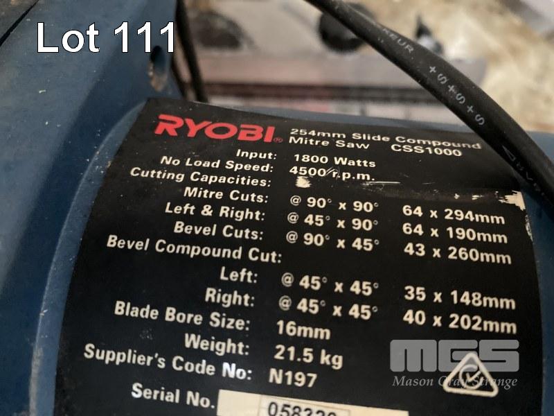 SLIDING COMPOUND MITRE SAW, RYOBI, 254mm MOD: CSS1000 240V