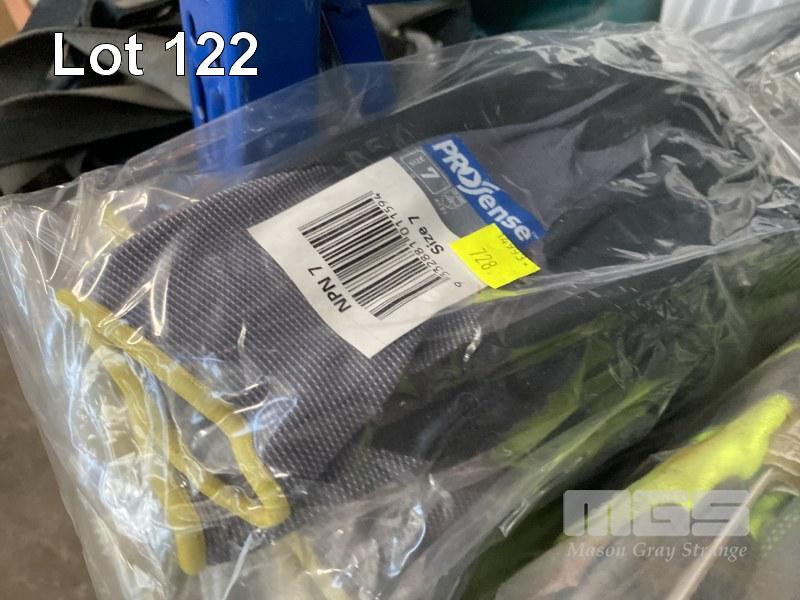 2 x BOXES (12/BOX) PROTECTIVE SAFETY GLASSES, MSA NULLARBOR NEX GEN MOD: 76943BLM BLUE MIRROR LENS, HC, UV400 & 24 x PAIRS PRO SENSE MAXI PRO GLOVES SIZE 7, 4 x UVEX PROTECTIVE SAFETY CAPS & 12 x PAIRS CONTEGO HI-VIS WORK GLOVES MECHANIC STYLE SIZE M, ETC
