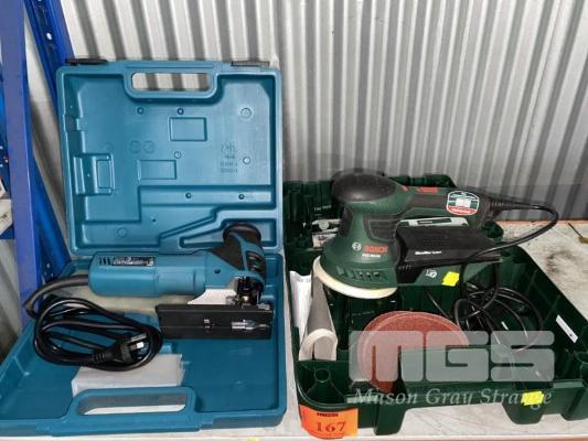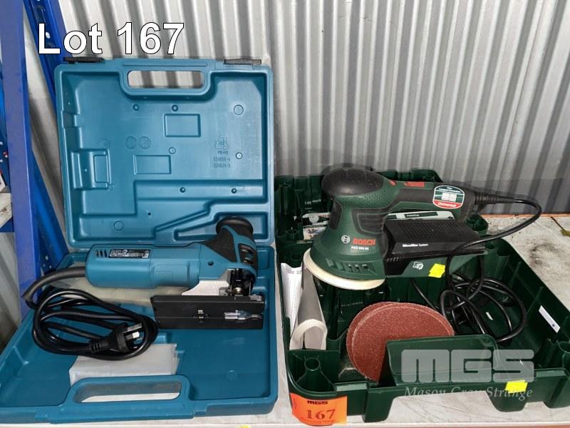 MAKITA JIGSAW, MOD: 4351FCT IN CARRY CASE WITH BOSCH ORBITAL SANDER MOD: PEX300AE 240V IN CARRY CASE