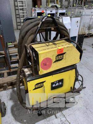 MIG WELDER, ESAB MOD: MIG4001I & WIRE FEED UNIT ARISTO YARD FEED 2000, 415V ON TROLLEY WITH CABLE
