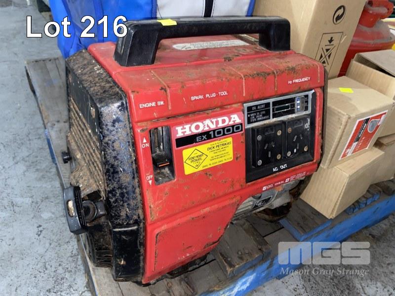 HONDA EX1000 GENERATOR, INDUCTION COOKTOP, 2 x FUEL CANS, ELEC MOTORS, PARTITIONS, ETC 1 x PALLET