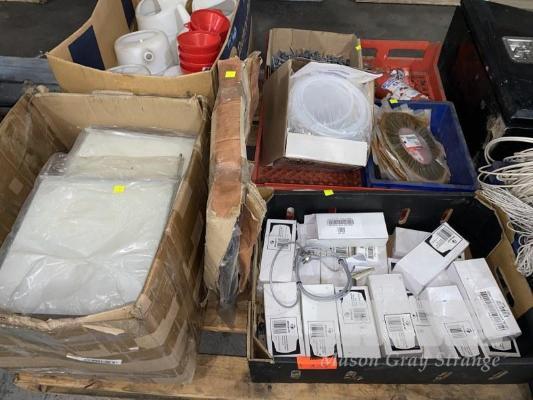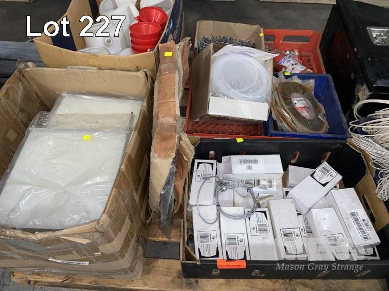 TEK SCREWS, HITACHI THRUST PLATES, OIL ANALYSIS KIT, WIRE ROPE LOCKS, SUIT NOTEBOOKS, TARGUS OIL/WATER CANS & FUNNELS, 1 x BOX PAMPHLET CLEAR MOUNTS 1 x PALLET