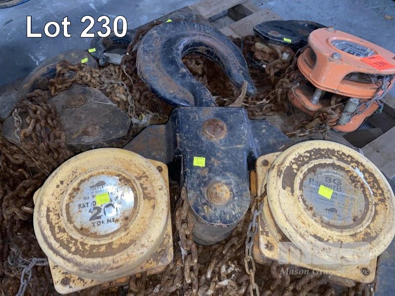 CHAIN BLOCK & HOOK ASSEMBLIES INC 1 x BEAVER 3S 10 TONNE, 1 x BEAVER 3G TWIN CHAIN BLOCK WITH HOOK, 20 TONNE & 2 x ASSORTED HOOKS 10 & 20 TONNE 1 x PALLET