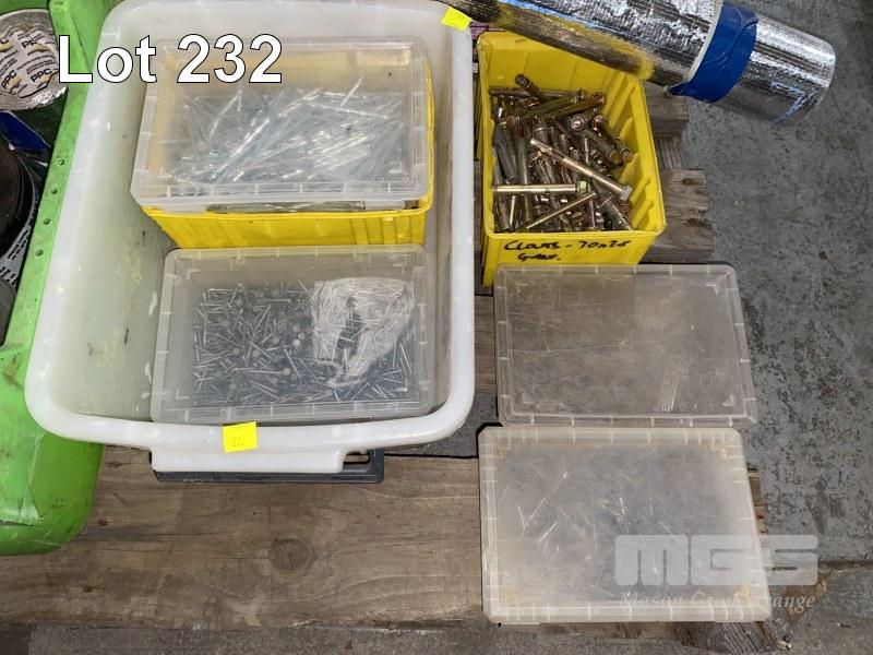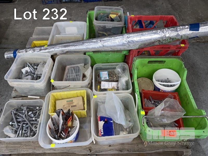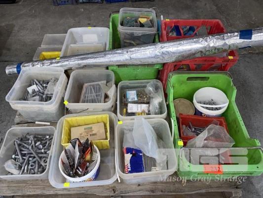ASSORTED NUTS, BOLTS, DYNA BOLTS, NAILS & SCREWS, PACKERS, INSULATION FOIL, ETC 1 x PALLET