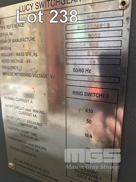 VACUUM CIRCUIT BREAKER, LUCY, SABRE TYPE: SSE RING MAIN UNIT SWITCHGEAR DOM: 2007 RATED VOLTAGE: 12kv NOMINAL CURRENT 630A AS NEW