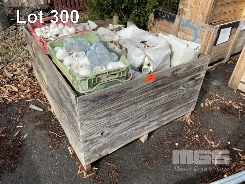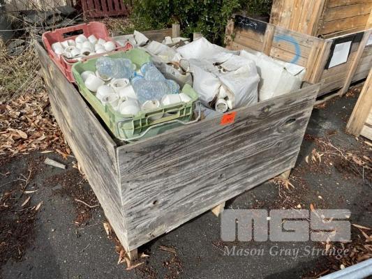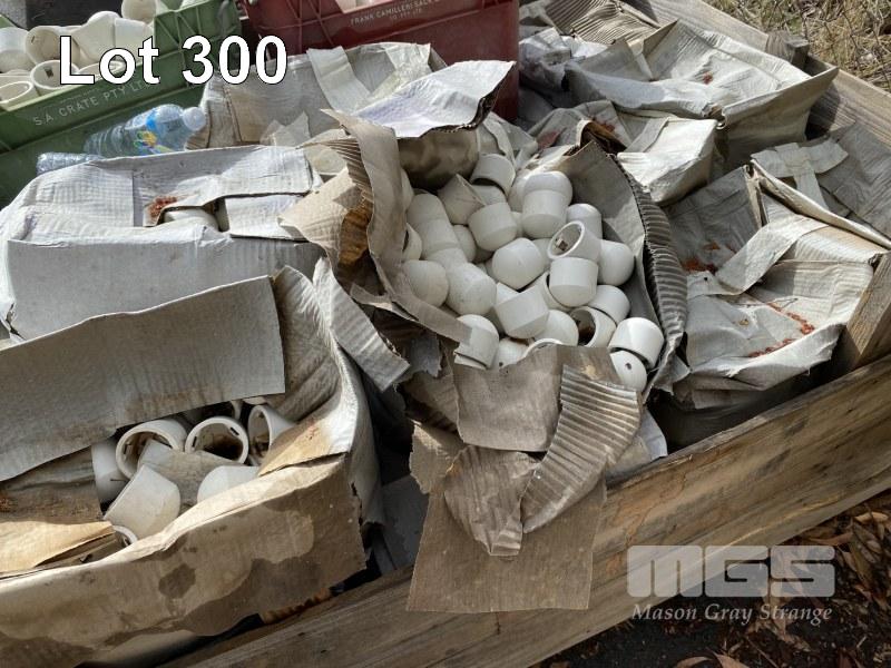 LARGE QUANTITY PVC CAPS, 60 & 60mm DIAMETER, 1 x TIMBER CRATE