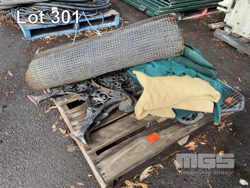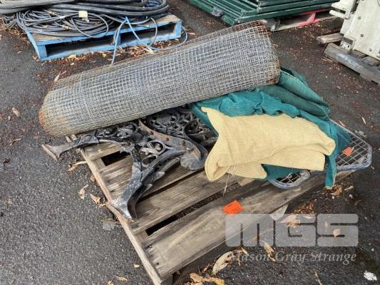 SHADECLOTH, WIRE MESH ROLL, CARGO BARRIER, CAST BENCH ENDS, 1 x PALLET