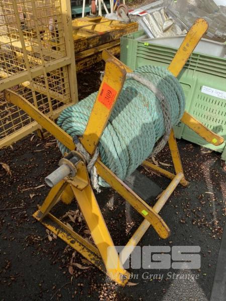 HEAVY DUTY STEEL WIND OUT REEL WITH SYNTHETIC ROPE, 20mm DIAMETER, REEL SIZE: 1000 x 900 x 100mm (H)