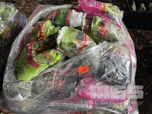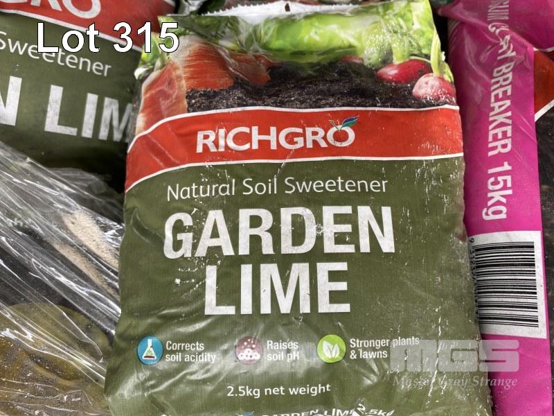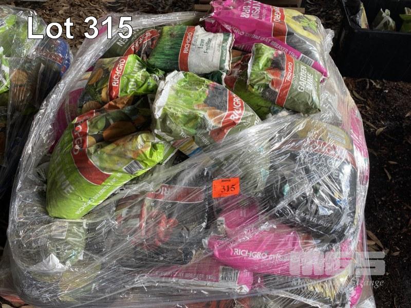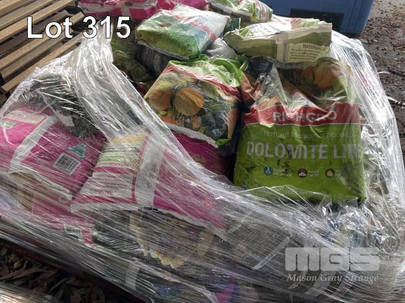 BAGS OF ASSORTED GARDEN NUTRIENTS & FERTILIZERS, INC. GARDEN LIME, GYPSUM CLAY BREAKER, RICHGROM FRUIT & CITRIC FOOD, ETC 1 x PALLET