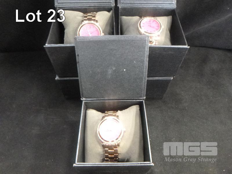 5 X BOXED PLAYBOY WRIST WATCHES, PINK & GOLD COLOURED FACE