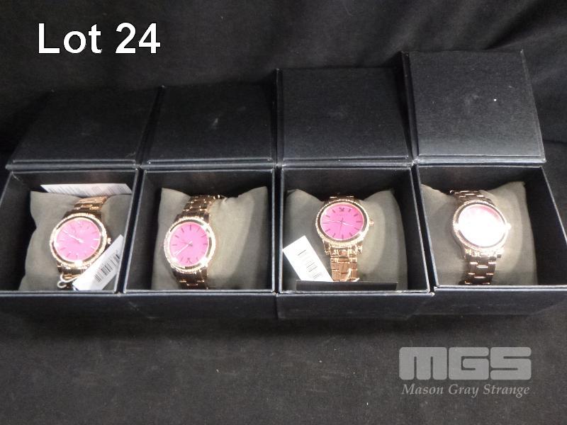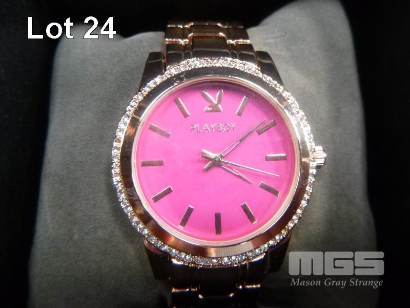 4 X BOXED PLAYBOY WRIST WATCHES, PINK & GOLD COLOURED FACE