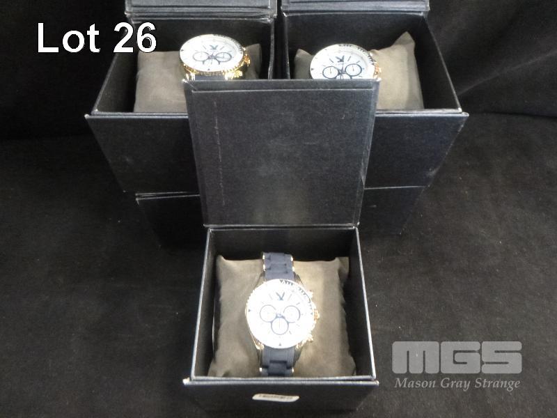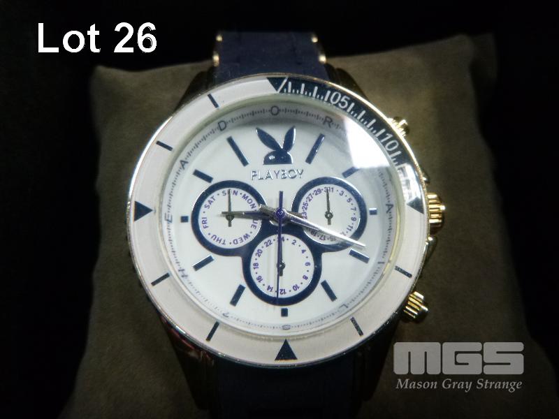 5 X BOXED PLAYBOY WRIST WATCHES, BLUE & WHITE COLOURED FACE