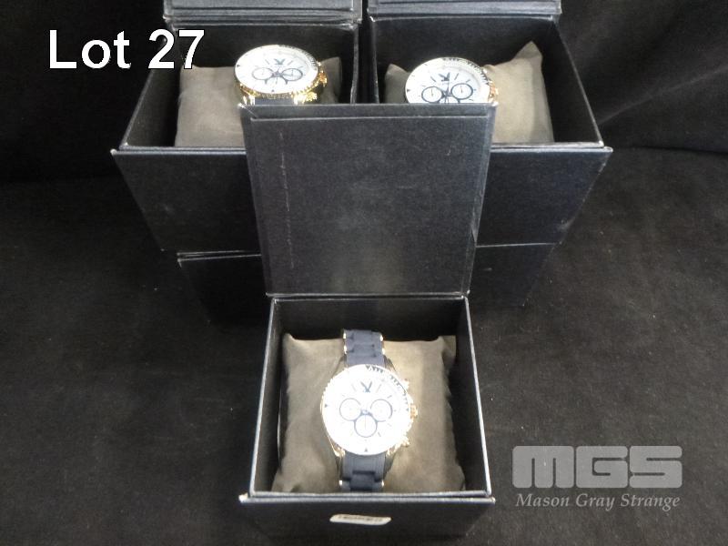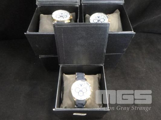 5 X BOXED PLAYBOY WRIST WATCHES, BLUE & WHITE COLOURED FACE