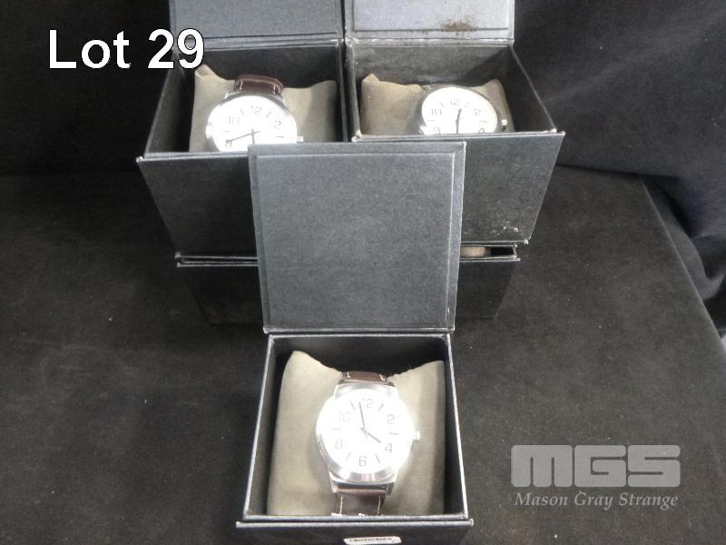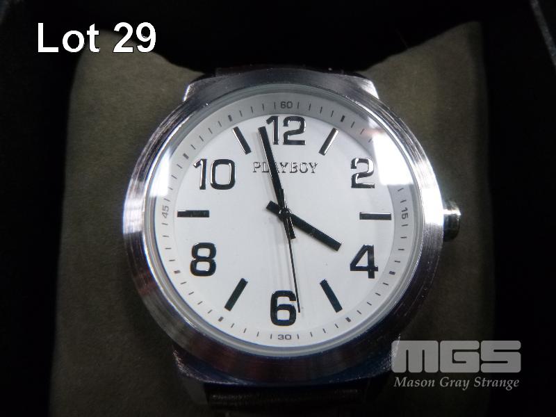 5 X BOXED PLAYBOY WRIST WATCHES, BLACK & WHITE COLOURED FACE