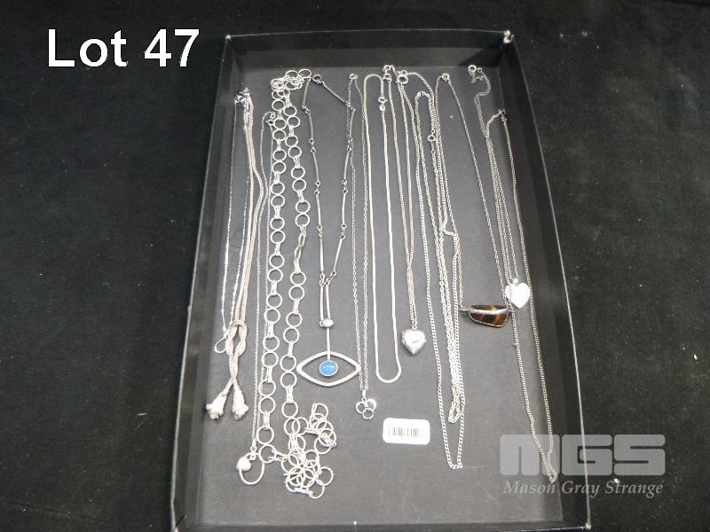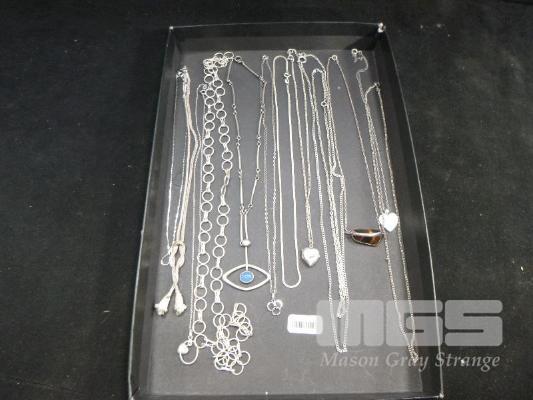 ASSORTED SILVER NECKLACES & PENDANTS, MARKED 925, STG, 835, ETC