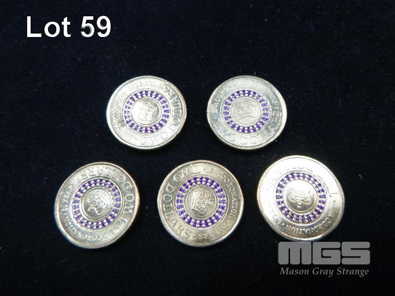 5 X 2013 AUSTRALIA, COMMEMORATIVE $2 COINS, CORONATION