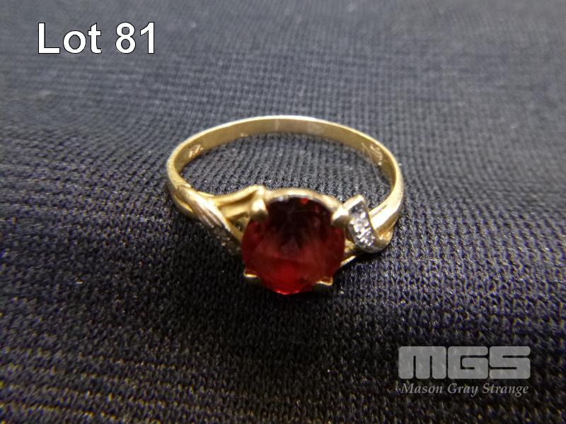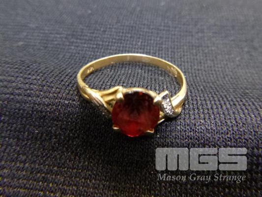 GOLD RING, SET WITH CUT RED STONE, MARKED 585, 2.12 grams