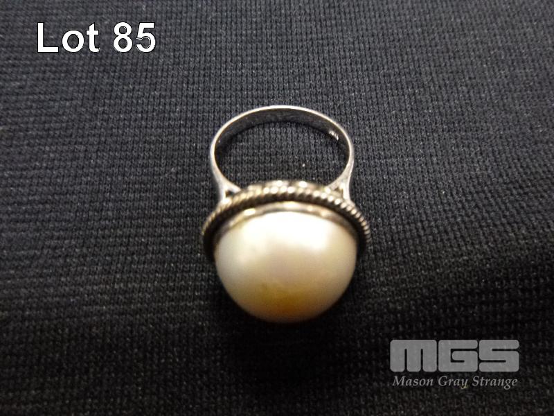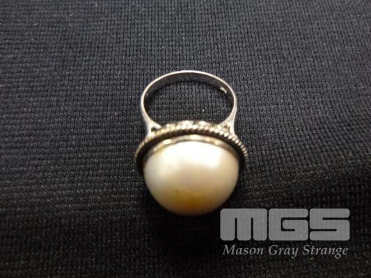 WHITE GOLD RING, SET WITH PEARL, MARKED 14K, 6.83 grams