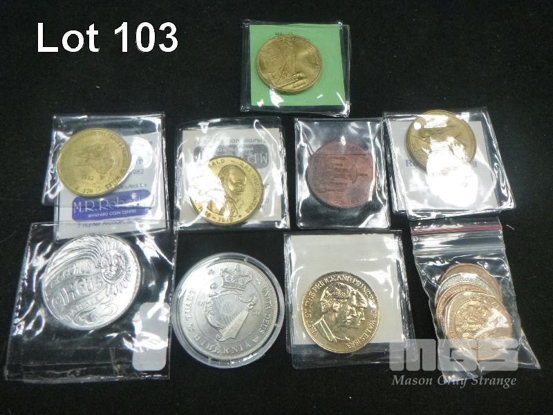 ASSORTED COMMEMORATIVE TOKENS, INC; MR ROBERTS, BRIM, THE ADVERTISER, HIBERNIA PATTERN, ETC