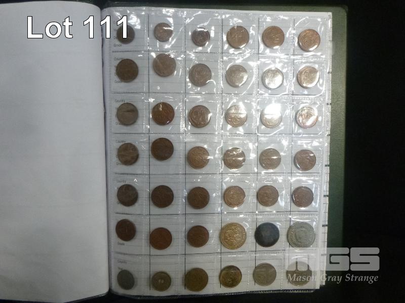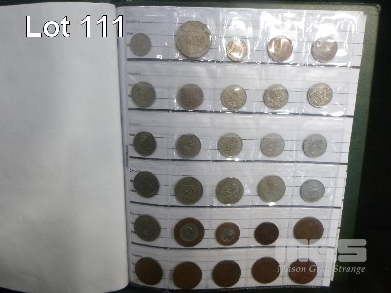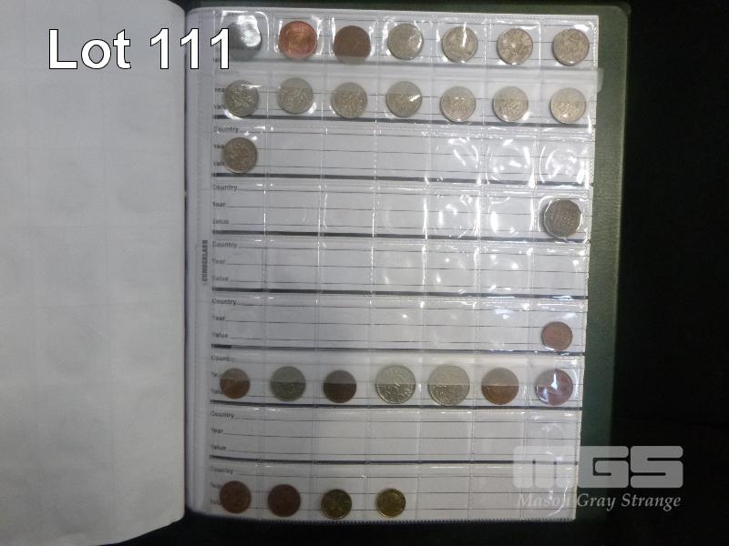 COIN ALBUM WITH 120 ASSORTED COINS, INC USA $1, AUSTRALIA 1c & 2c, ETC