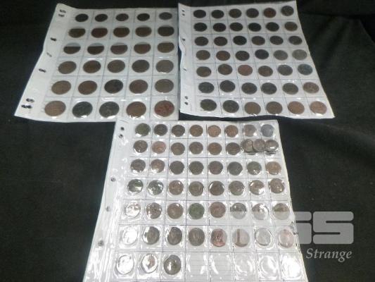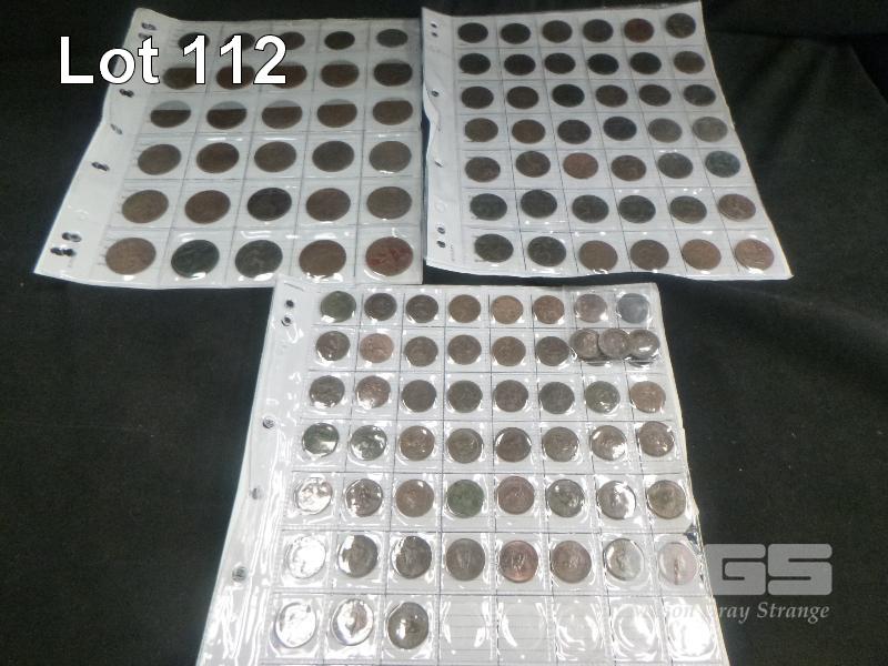 3 X SHEETS OF GREAT BRITAIN FARHINGS (2 COIN BROOCH), HALF PENNY & PENNIES (126 COINS)