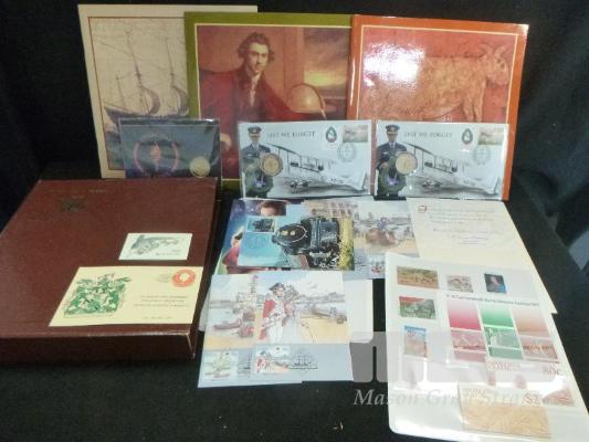 AUSTRALIAN BICENTENNIAL STAMP COLLECTION FOLDERS, COIN/FIRST DAY COVERS POST CARDS & STAMPS