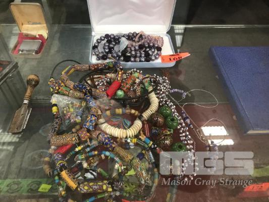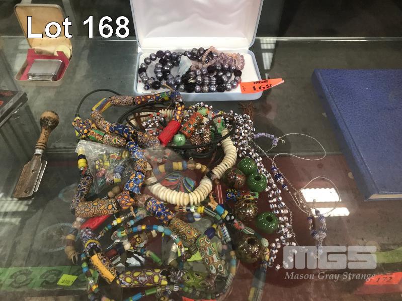 ASSORTED BEADED JEWELLERY, SPARE BEADS ETC