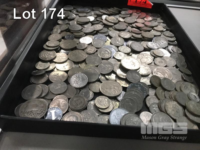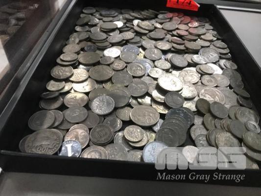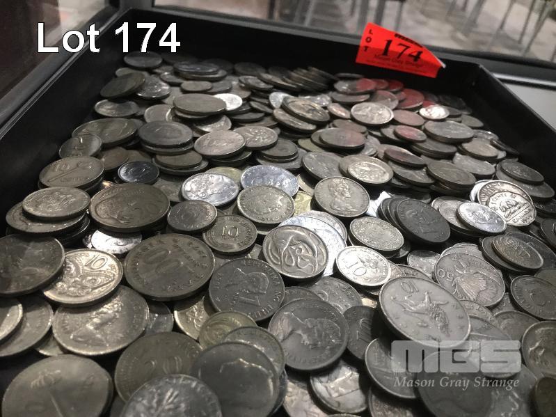 ASSORTED WORLD COINS, SILVER COLOUR, ASSORTED NATIONS & DENOMINATIONS