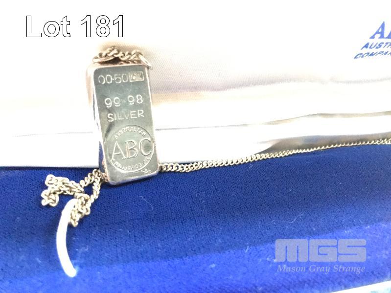 NECKLACE WITH 99.98 SILVER 1/2 OZ INGOT PENDANT