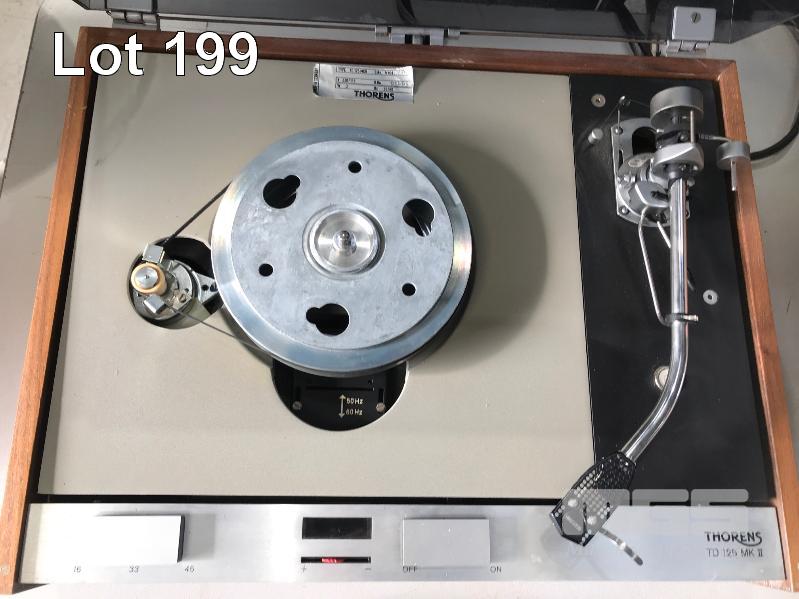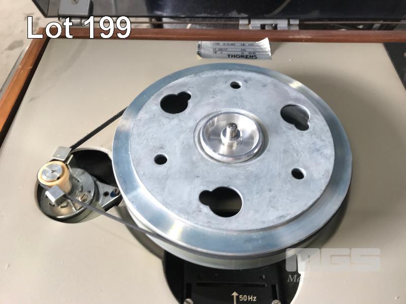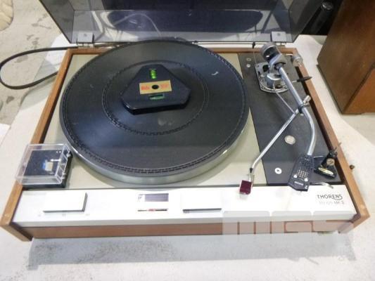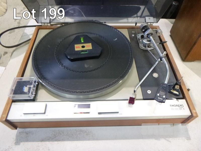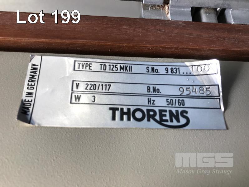 THORENS TURNTABLE, MID 1970'S MODEL TD125 MKII, S/N 9831...100 WITH ADDITIONAL RECORD BUFFING/BRUSH CLEANING ARM, BIB (ENGLAND) 44 LEVEL & NEW STYLUS NOTE - GOOD CONDITION FOR AGE, MARK ON PLASTIC COVER, DRIVE MOTOR RUNS HOWEVER BELT DRIVE WHEEL NOT ENGAGING (POSSIBLE CLUTCH ISSUE)