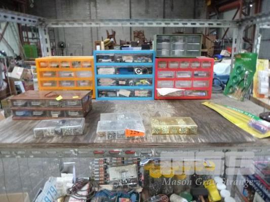 ASSORTED PLASTIC SMALL PARTS DRAWERS & CONTENTS OF ELECTRICAL SPARE PARTS & COMPONENTS 1 X BAY