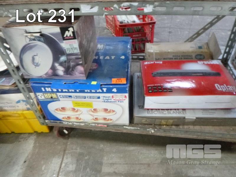 SONIQ HDMI DVE PLAYER, ELECTRIC BLANKET, HEAT LAMP & COOKWARE