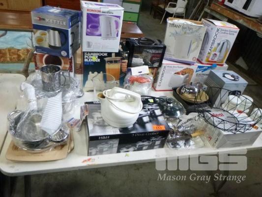 ASSORTED KITCHEN APPLIANCES & COOKWARE,1 x TABLE