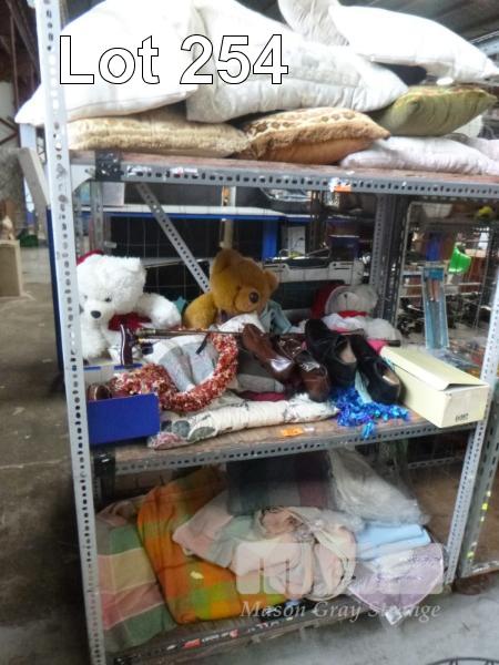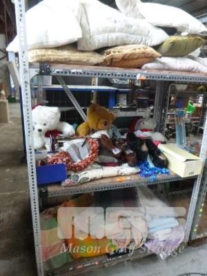 ASSORTED CUSHIONS, TEDDY BEARS, SCARVES, LEATHER SHOES,SIZE 8.5-9, BEDDING, ETC, 3 x BAGS