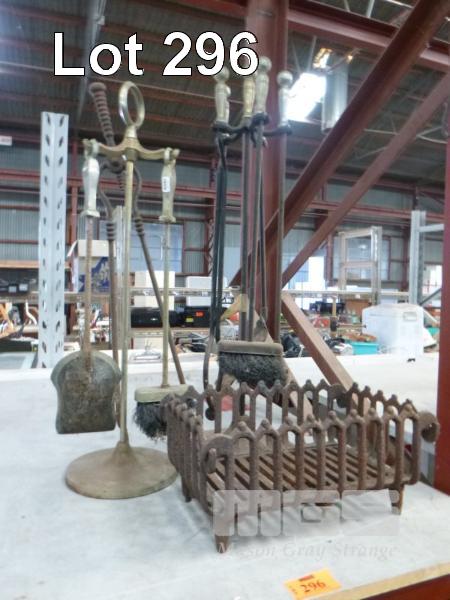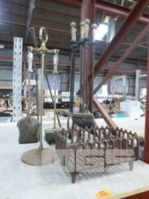 2 x FIREPLACE CLEANING KITS & CAST IRON FIREPLACE RACK
