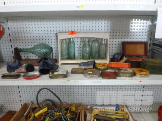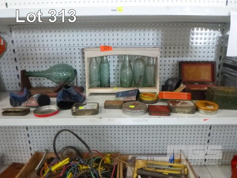 ASSORTED VINTAGE BOTTLES & TINS, ETC