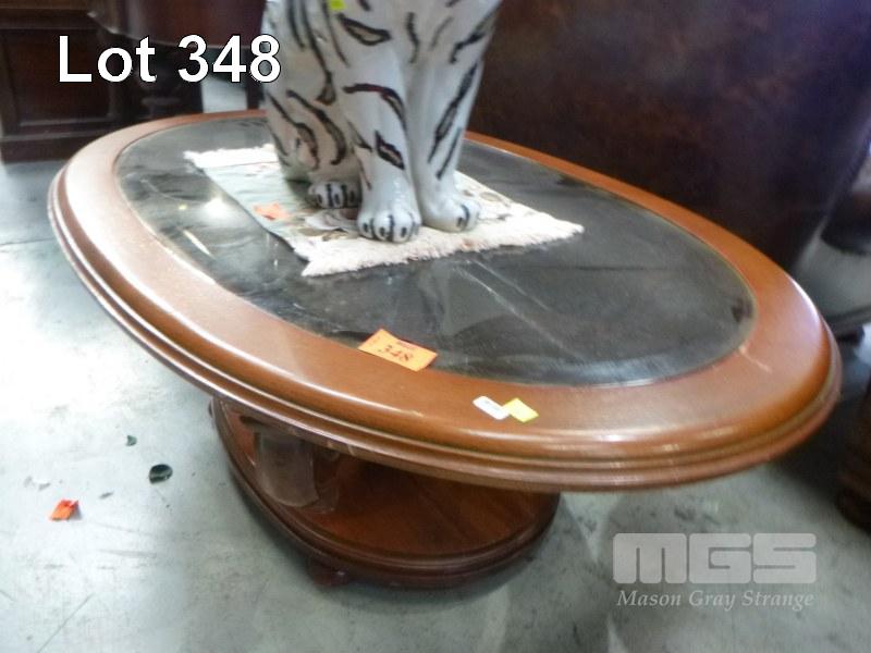 OVAL, TIMBER COFFEE TABLE, GLASS TOP
