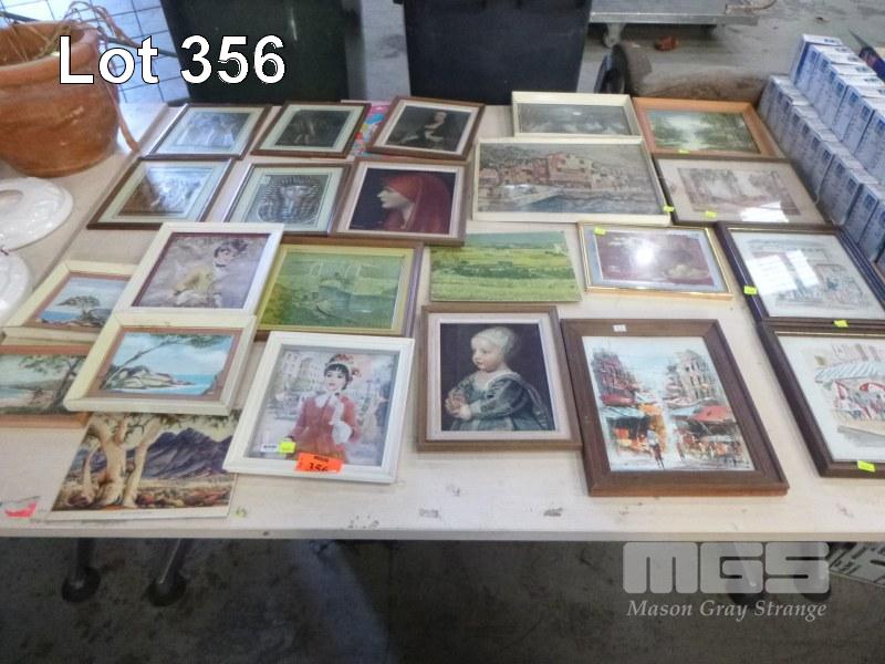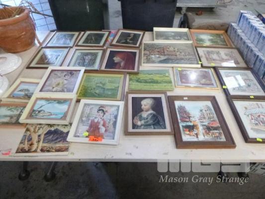 ASSORTED FRAMED PAINTINGS & PRINTS, 1 x TABLE