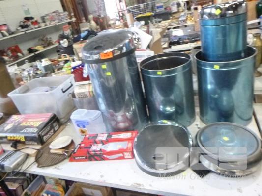 ASSORTED KITCHEN BINS, BOCCE LAWN BOWLING, PLASTIC CONTAINERS, ETC, 1 x TABLE